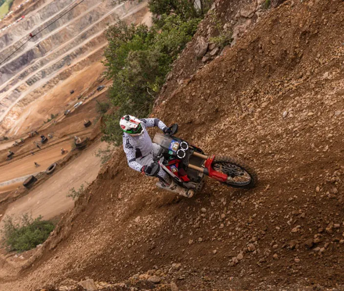 The Iron Road Prologue is known for its demanding format—a high-speed climb over 13.5 kilometers with more than 600 meters of elevation gain. It’s a pure test of power, control, and stamina. Meo and the DesertX Rally, supported by the Entrophy Motorbike team, delivered a near-perfect run that secured a front-row position for the final race. Although brutal terrain brought Meo’s final push to an early stop, the initial performance demonstrated the bike’s capability at the highest level of competition.