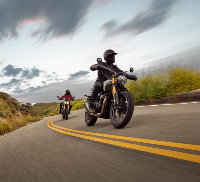 Both models have been engineered for easy handling and everyday usability. The slim seat profile, low weight, and accessible seat height make the bikes approachable for riders of all sizes. The Speed 400 is tuned for urban riding and spirited backroad performance, featuring 43mm upside-down front forks and a mono-shock rear suspension setup that provides agile, precise handling. The Scrambler 400 X, on the other hand, takes on a more rugged personality, with a longer wheelbase, extended suspension travel, and wider handlebars for improved control on mixed terrain.